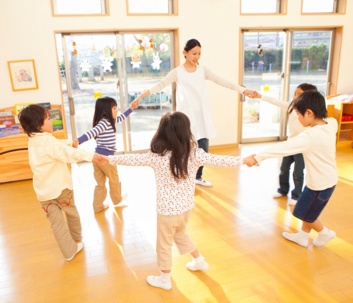 集団活動では、社会性の発達や、自己コントロールする力を身につけ、コミュニケーションの楽しさを感じられる経験を積み重ねていきます。